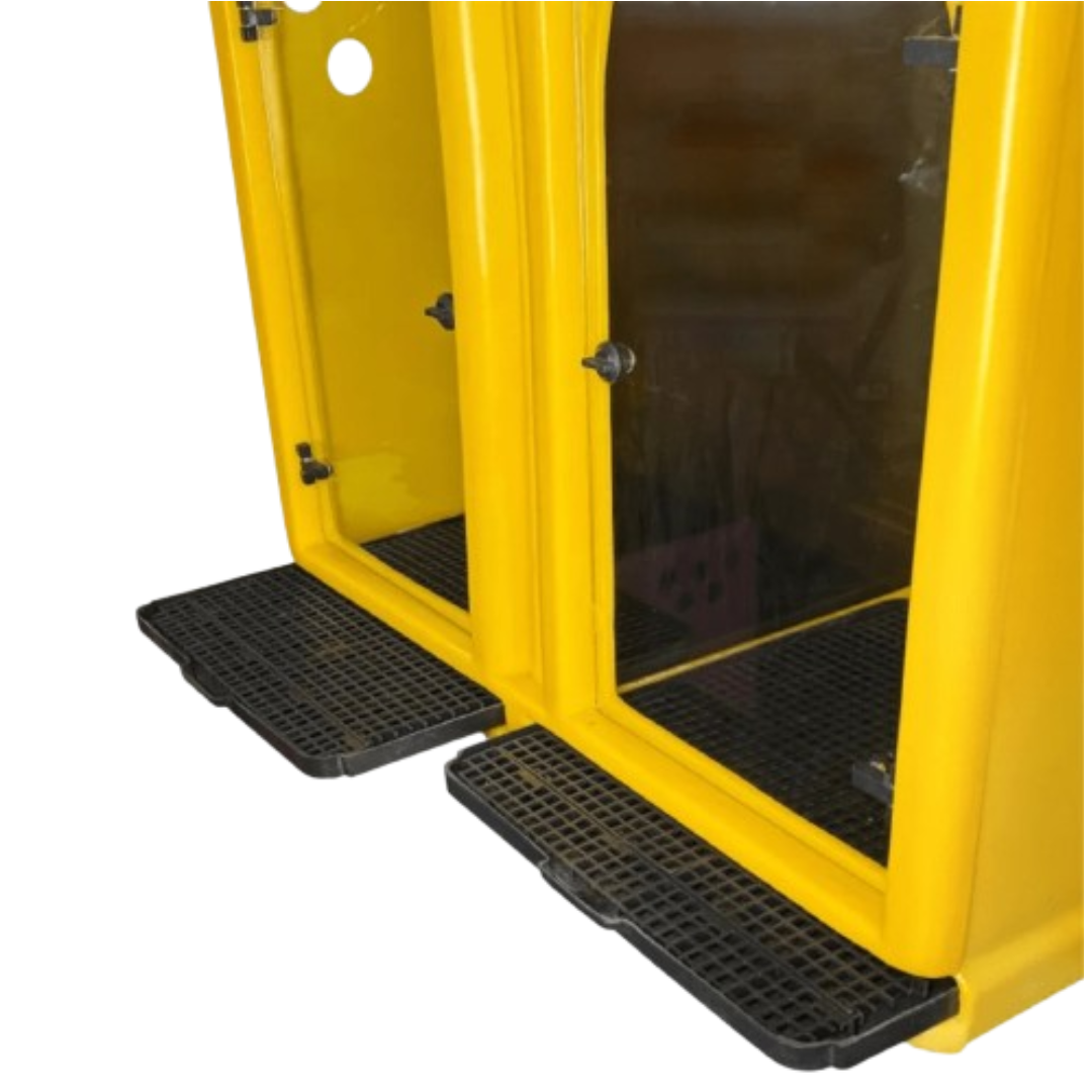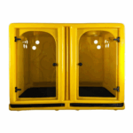O Canil Duplo adiciona um toque de estilo a qualquer ambiente. As portas de vidro temperado de 6mm, equipadas com trincos reforçados, garantem segurança e visibilidade, enquanto os estrados plásticos elevados evitam o contato dos pets com água ou resíduos, promovendo um ambiente mais higiênico.